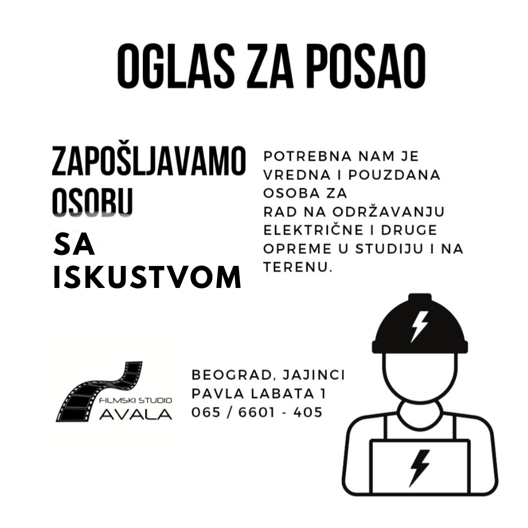 Tražimo odgovornog i pouzdanog radnika za stalni posao u filmskom studiju i na terenu.